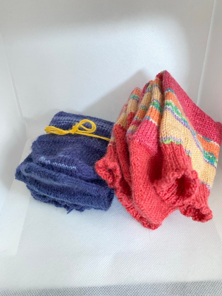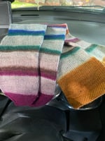 Overwhelming yarn hoard got you rethinking your life choices? Send me your skeins and I'll tube them for you in either 60 stitches or 72 stitches round . Cast off on bright waste yarn ready for afterthought heels toes and cuffs. If you prefer a turned cuff per 50 grams, just select in checkout and I'll add at no extra charge. Really- it ain't no thang.